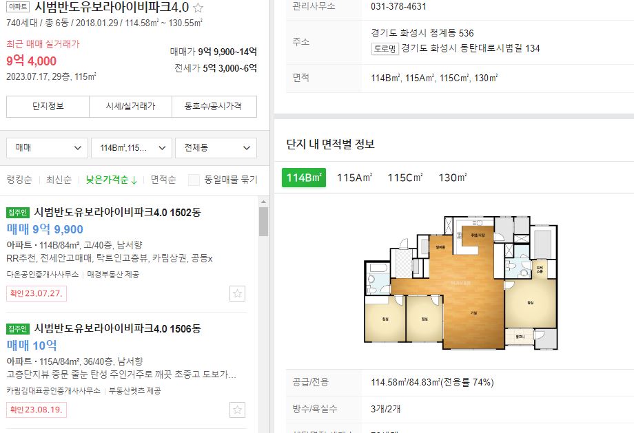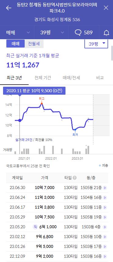 39평은 21.년 9월 1.42억 최고점에서 22.11월 9.2억까지 빠졌다가 현재는11.4억으로 21년 가격으로 회복해서 현재 전세호가는 6억, 매매호가는 12.3억 입니다.