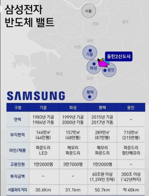 두번째 많은 일자리 입니다. 동탄 인근에는 이미 질 좋은 일자리가 많은데요, 기흥사업장,화성사업장,평택사업장으로 반도체 사업장 정중앙에 위치하고 있습니다.그리고 이번에 발표된 반도체 클러스터 입니다.원삼면에 sk하이닉스가 100조를 투자하여 최첨단 공장을 짓고 있는 와중에 용인 남사면에 삼성전자에서 300조를 투자한다고 합니다.이번에 발표된 남사면 반도체 클러스터는 현재 평택에 삼성전자 반도체 공장에 2배 이상의 크기로 계획중이고, 고용창출은 160만명으로 예상되며 직접채용은 약20만명 정도가 될것으로 예상되는데, 이 많은 인원을 수용할 인근 도시는 많은 인프라가 완성된 동탄이 될것으로 보입니다.