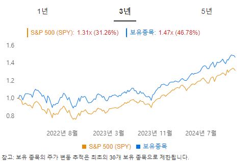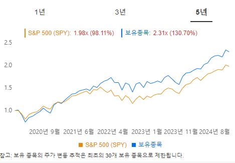 1년(2024):SPY +26.41% vs 워렌버핏+ 26.49% (비슷)
