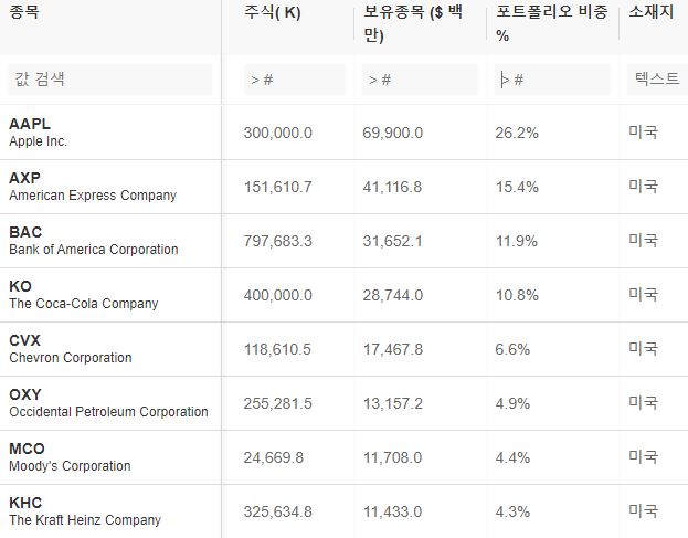 오늘은 투자의 대가 워렌버핏의 투자 포트폴리오를 알아보겠습니다.