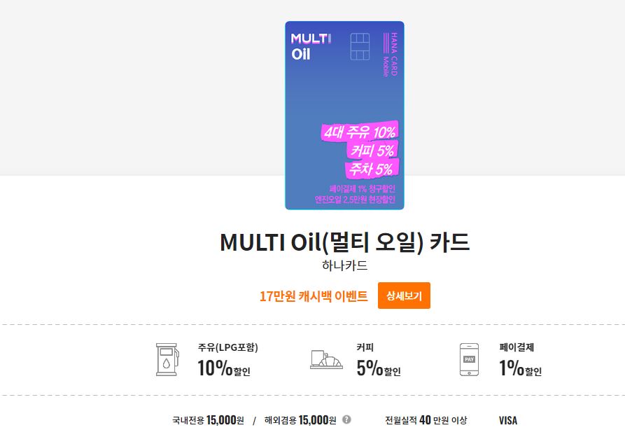 3.주유할인 카드 TOP 3 MULTI Oil(멀티 오일)카드-하나카드