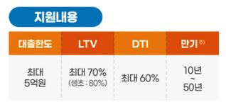 기존 대출기준은 주택가격 시세6억원에서 9억원 이하로 확대하고, 기존 7,000만원이었던 소득요건 부부합산소득은 없앨 예정(유력)및 1억 이하로 할 예정입니다. 대출 한도는 3억 6천에서 5억원으로 상향됩니다.