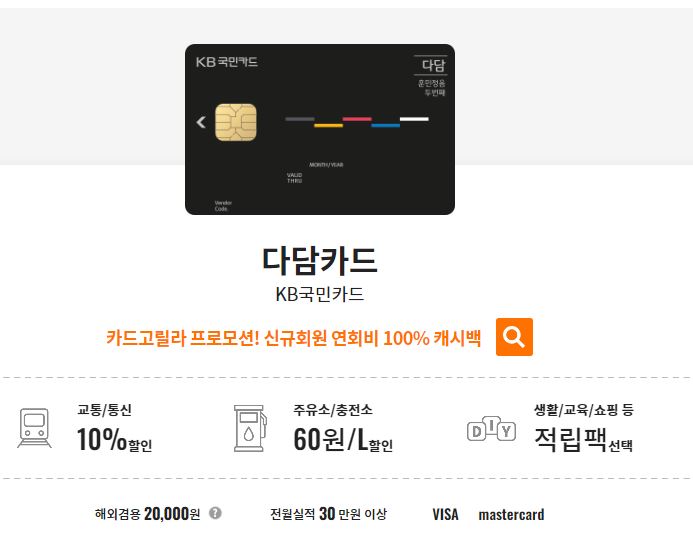 2.주유 할인 카드 TOP 2 다담카드-KB국민카드